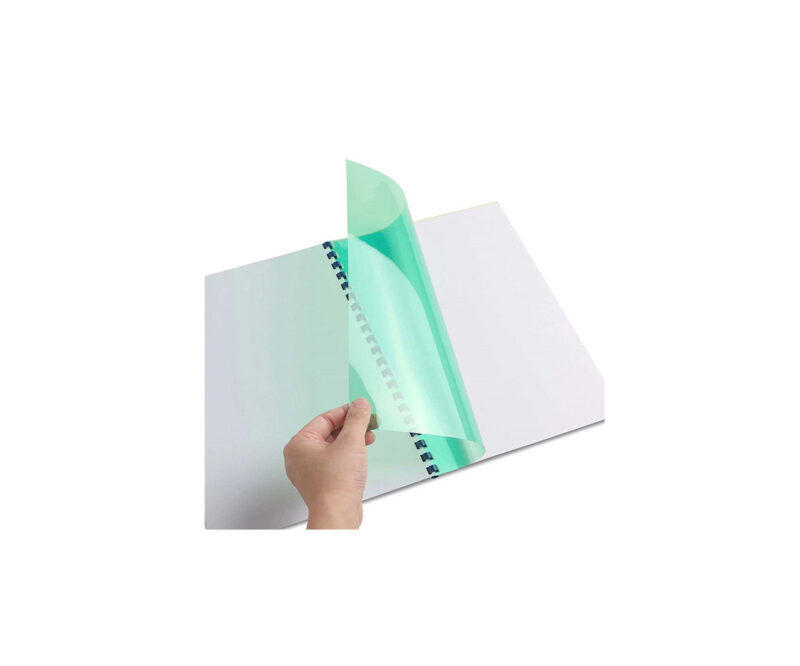 PVC folija debljine 150 mikrona. Format A4 (210x297mm). Visoko kvalitetan proizvod. Pakovanje od 100 folija. Za upotrebu kao prednja korica. Za koričenje u svim mašinama sa plastičnom ili žičanom spiralom