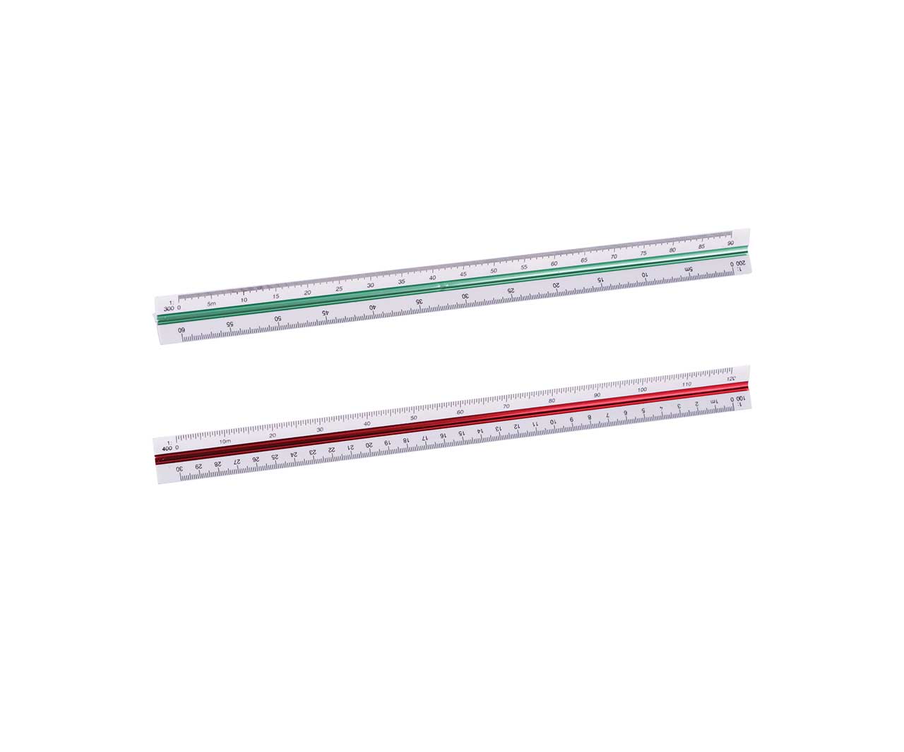 Meri razmeru 1:100, 1:200, 1:250, 1:300, 1:400, 1:500. Napravljen od kvalitetne plastike. 6 razmera na jednom lenjiru